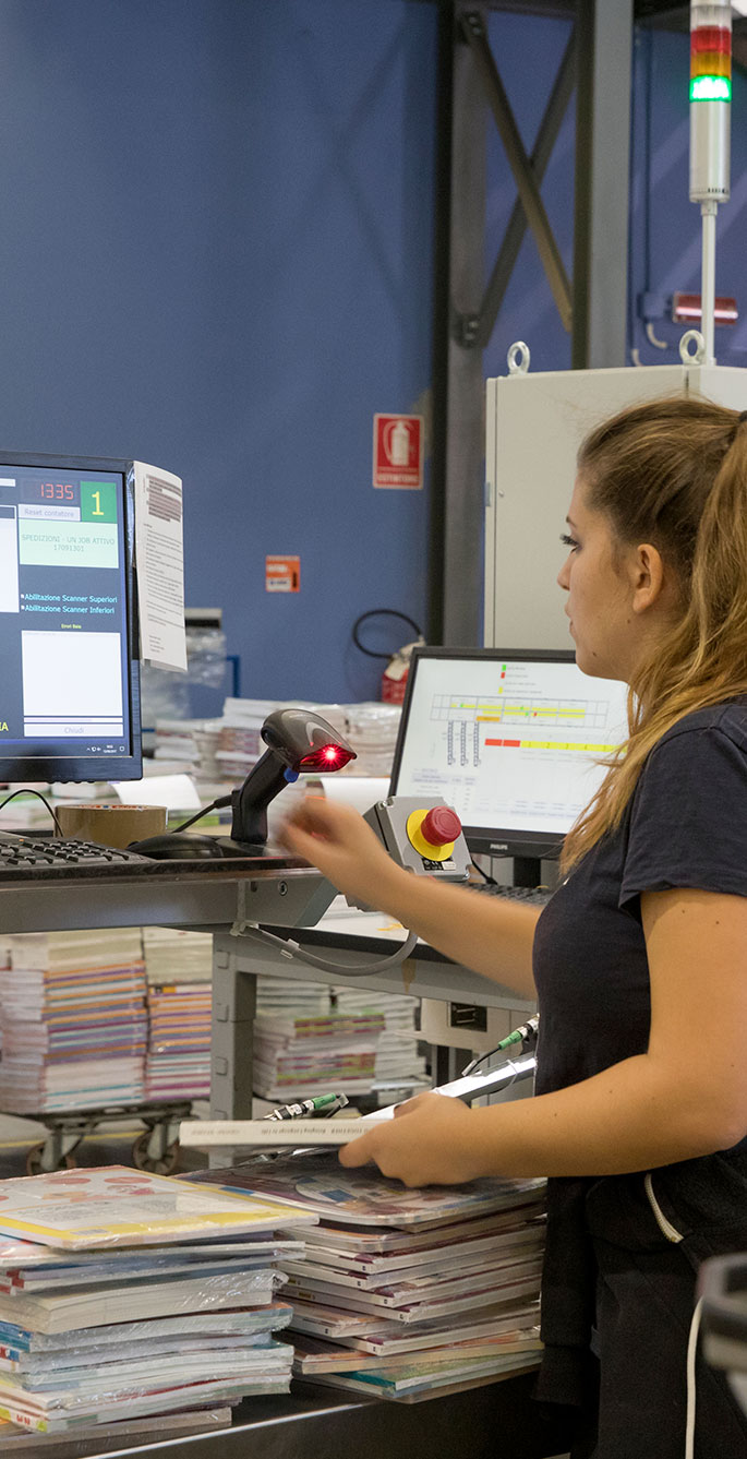 Siamo specializzati nella logistica di prodotti editoriali, con un forte orientamento all’automazione e all’innovazione. Nel nostro magazzino di oltre 7.000 mq gestiamo ogni giorno l'arrivo di circa 100.000 libri e ne spediamo circa 95.000, servendo in media 6.500 clienti all'anno."